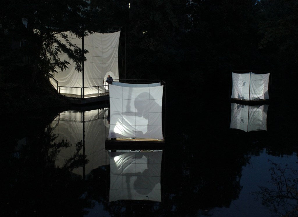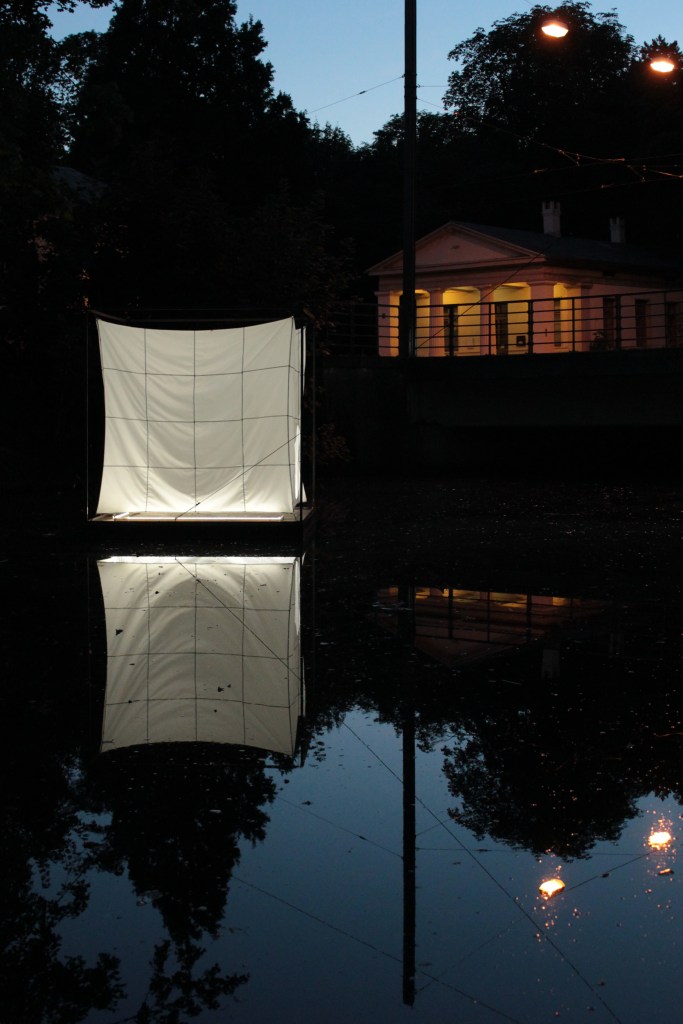 Bei den schwimmenden Satelliten entstand der gleiche Effekt. Doch zusätzlich stellte sich durch die Schwimmbewegung eine Irritation des Orientierungssinns ein. Konzerte, Lesungen und Vorträge fanden statt. Die nachts von innen erleuchteten Kuben, wurden zu illuminierten Treffpunkt-Skulpturen oder luden zu Schattenspiel, Filmereignissen und szenischen Lesungen ein.