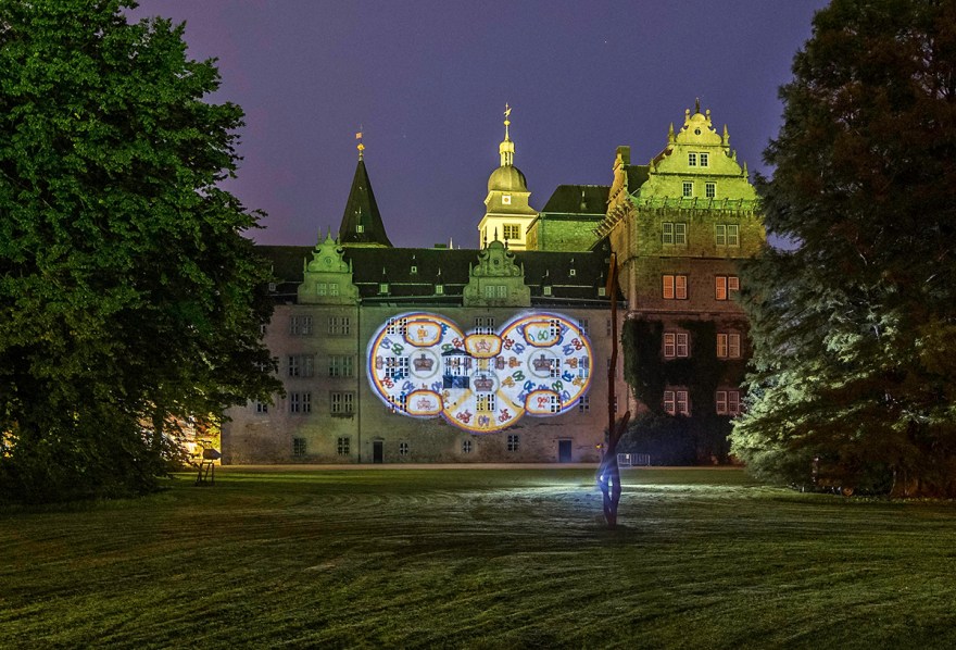 Die rotierenden Scheiben eines Glücksspiel-Automaten sollten während der Phänomenale 2017 (kurz vor der letzten Bundestagswahl) eigentlich auf der Fassade des Wolfsburger Rathauses platziert werden. Die Aufstellung eines Baugerüstes machte mir allerdings einen Strich durch die Rechnung. Ich durfte aber kurzfristig auf die Fassade des Schlosses ausweichen. Ein ebenfalls treffender Ort! War es nicht auch der Adel, der schon immer seine Spielchen mit der Macht trieb?